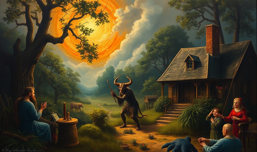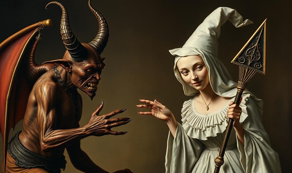 In many folk tales the Devil plays the role of a powerful, but funny creature. In these tales the Devil’s part is intentionally funny, and sometimes he may even be deceived by humans, if they are smart enough.